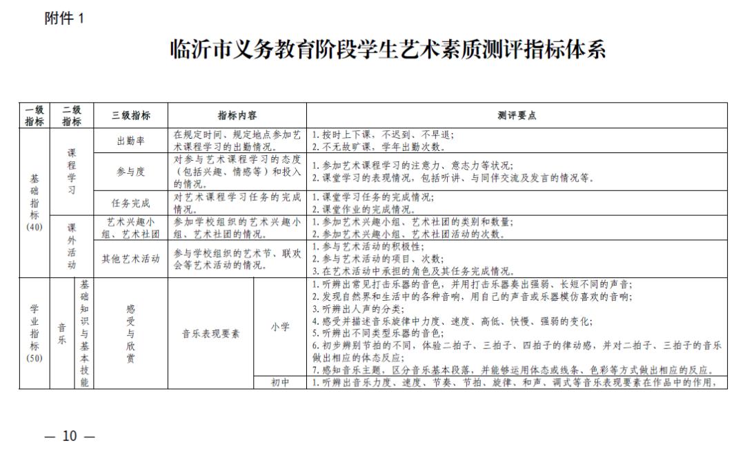 1.临沂市义务教育阶段学生艺术素质测评指标体系