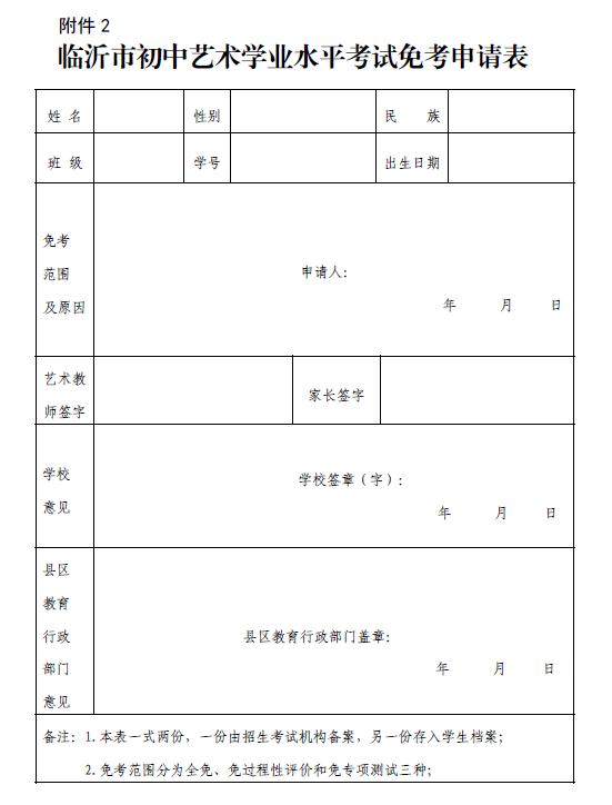 2.临沂市初中艺术学业水平考试免考申请表