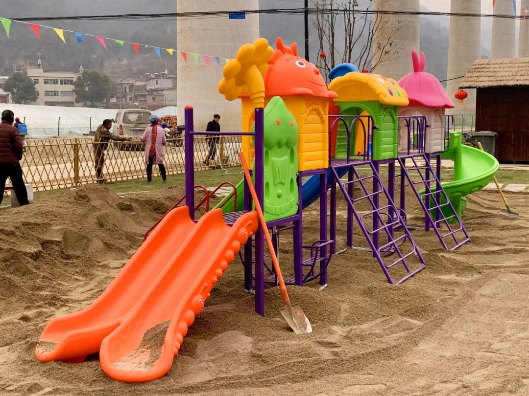 这里设置了很多小孩玩耍的器械,有滑梯、跷跷板、草莓打卡拍照板、草莓模型等,让孩子度过愉快的周末时光。