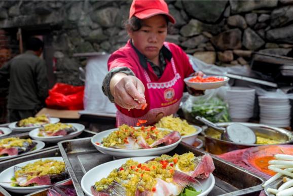 玩累了,再到农家乐品尝地道的黄龙鱼头,鱼的“鲜”和辣椒的“辣”融在一起,味蕾会得到满足。