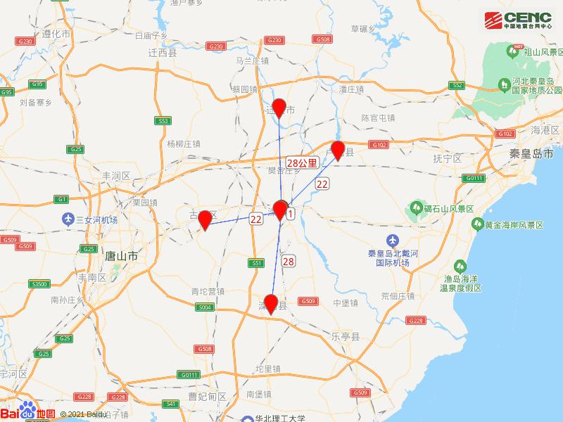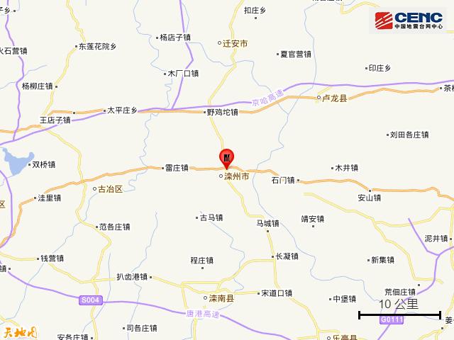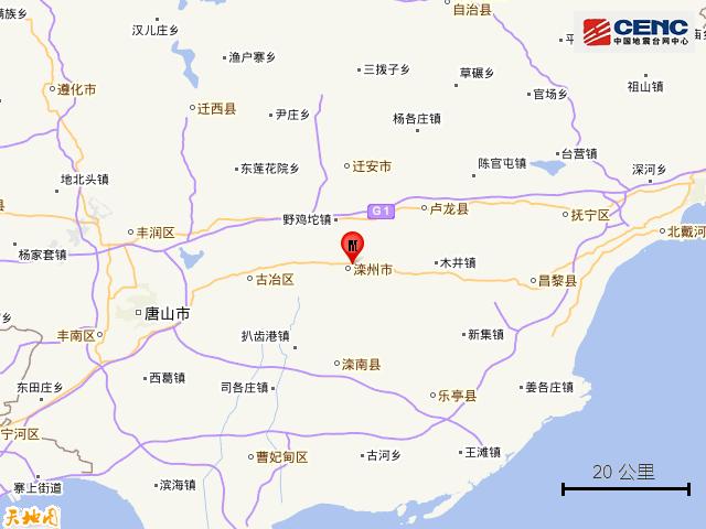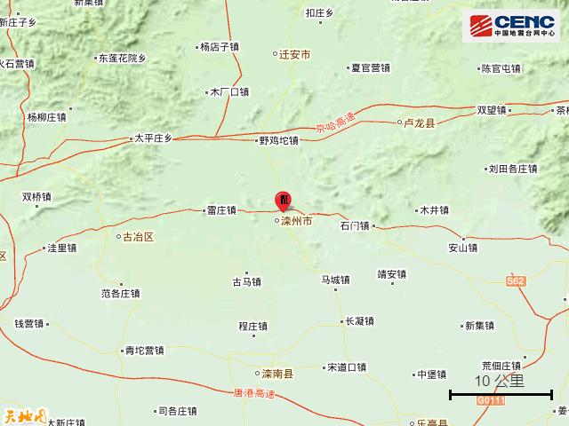 基础背景附近村镇:本次地震周边5公里内的村庄有米家、葛坎村、毛庄村、军营村、西高坎村、张坎村、北双山村、吴坎村、兰庄村、西坨子头村,20公里内的乡镇有滦州镇、东安各庄镇、雷庄镇、滦州车镇、油榨镇、樊各庄乡、野鸡坨镇、古马镇、马庄子乡。