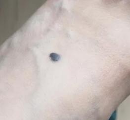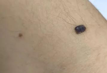 男,37岁,右胳膊臂弯处有一颗大约5毫米的凸起黑痣。