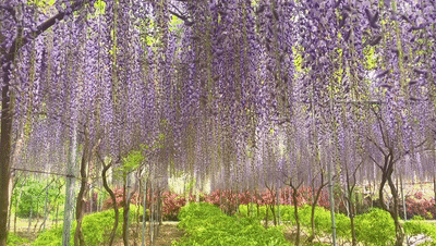 据景区工作人员介绍,这处花架四周种植有“熊野”“清流亭”“西寒多”等品种的多花紫藤,其中白花的紫藤品种名为“安了寺”,是一种比较罕见的紫藤花。目前,紫藤花正值盛花期。