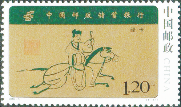 2007年发行的《中国邮政储蓄银行》特种邮票中的《驿使图》画像砖