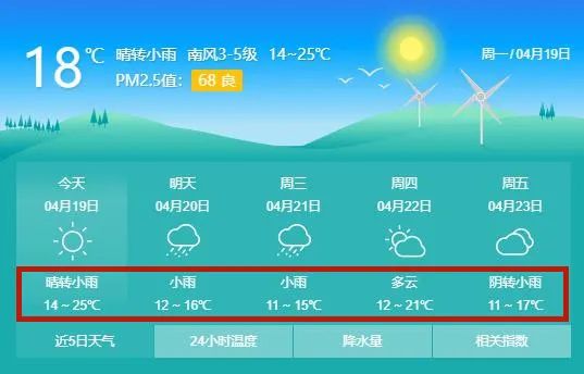 兰 考 晴天转多云 25℃ 阴天有小雨 14℃