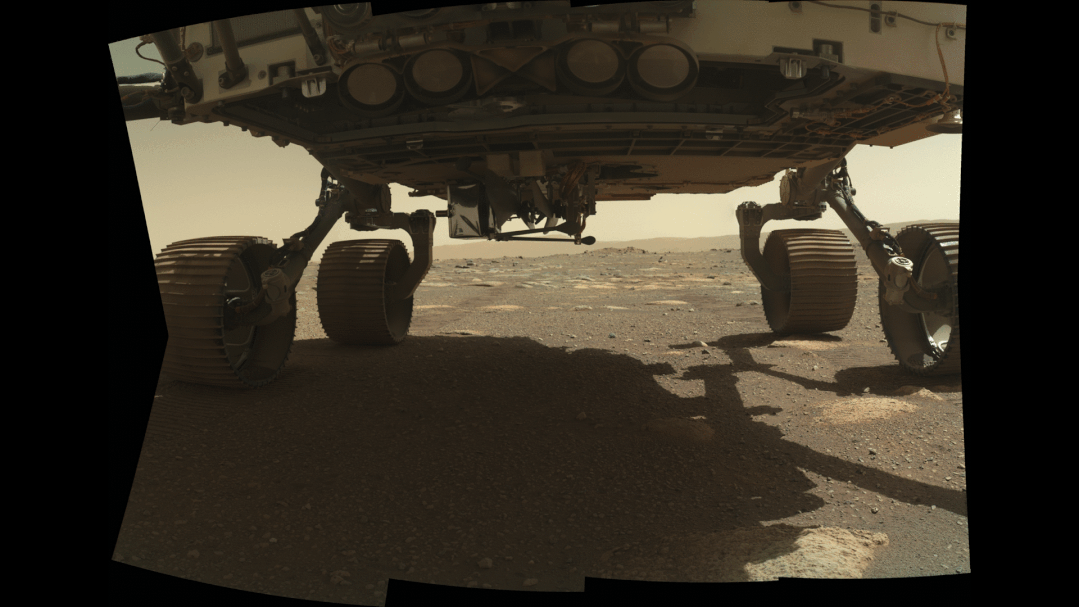 毅力号机械臂顶端的紫外拉曼光谱仪夏洛克配套的相机华生拍摄的车底 | NASA/JPL-Caltech/MSSS/PIA24448搭“顺风车”来火星