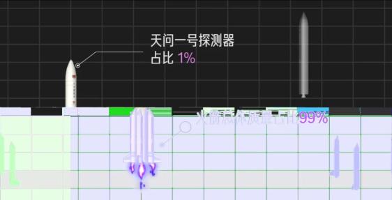 强大的运载火箭是火星探测的先决条件。为了突破地球和太阳引力的巨大影响,5吨重的探测器仅占火箭总体质量的1%,其余重量绝大部分都为火箭推进剂,这是人类航天梦想的巨大代价。