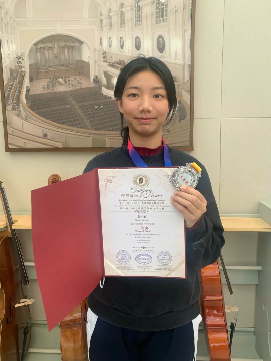 张宇宣在小提琴比赛中获奖。“从小我就对音乐非常感兴趣,和父母商量想走音乐这条路,家人都很支持。”张宇宣说。