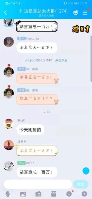 更多的网友喜欢叫她“宣总”。4月10日,在超1000人的“这是宣总de大群”粉丝群里,欢乐的祝贺语刷屏不断。当天,张宇宣B站粉丝超100万,很多潜水的群友“现身”,“恭喜宣总一百万!”