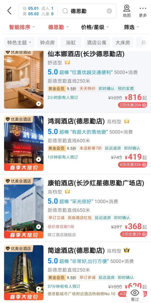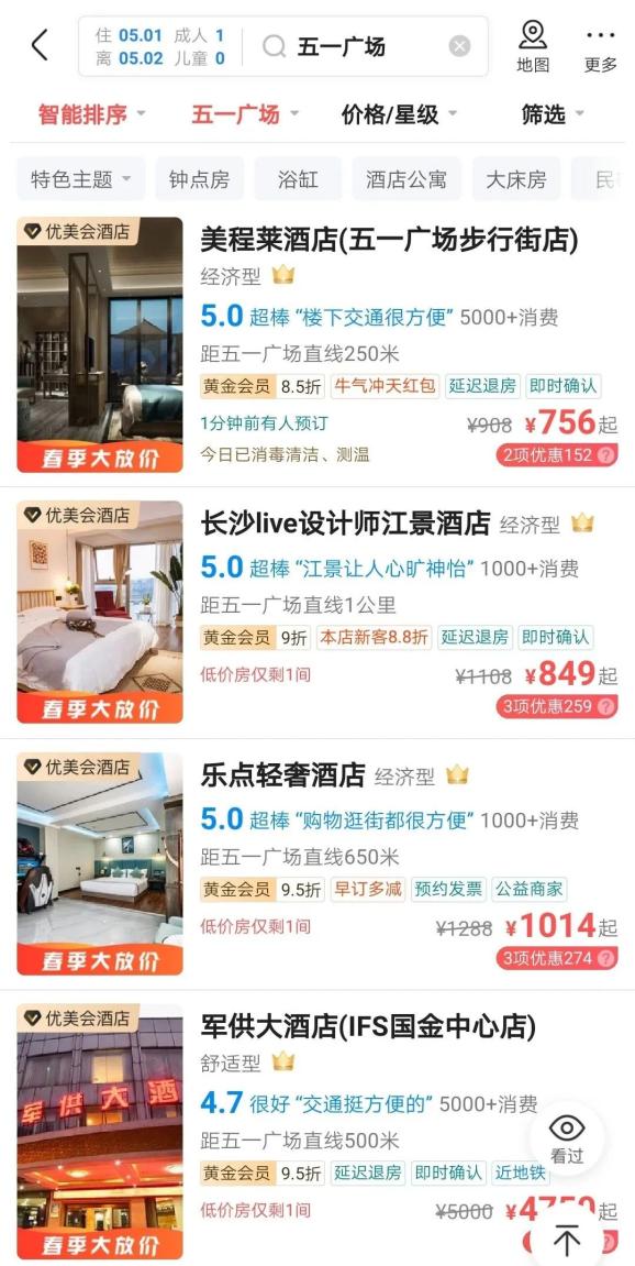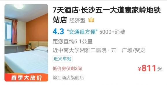 五一长沙快捷酒店涨到千元一夜!网友:抢到了票却住不起酒店