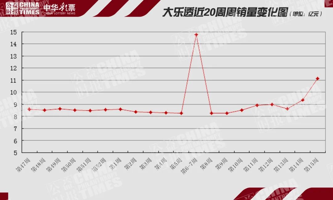 该周,受多地派奖营销活动影响,八大游戏销量稳步回升。其中,大乐透10亿元派奖正在如火如荼开展之中。受此影响,该周大乐透游戏周销量也突破11亿元,达11.13亿元。而在大乐透第2021042期,单期销量达3.93亿多元,创大乐透历史单期销量纪录。超500万大奖101注