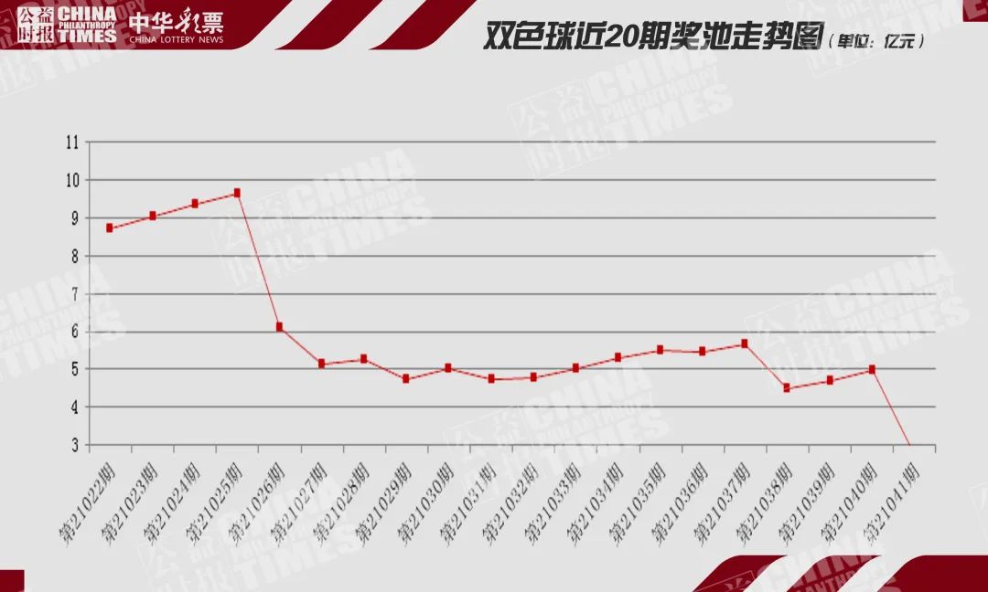 该周,双色球奖池跌至2.75亿元,创年度新低。这也是自2017年12月26日的双色球第2017152期的2.70亿多元奖池后,双色球出现的最低奖池,为近481期以来的最低奖池。