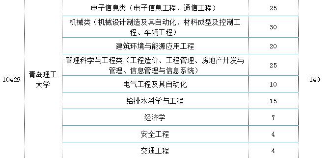 青岛理工大学招生计划