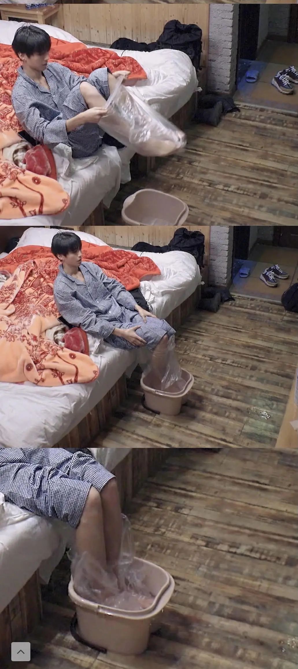 可王俊凯是怎么操作的呢?从视频中不难看出:王俊凯是先将双脚套进塑料袋中,然后再伸进装满热水的塑料桶内,这波不寻常的操作立刻遭到了网友吐槽:这难不成是在“蒸脚”吗?这样的操作能有啥用吗?