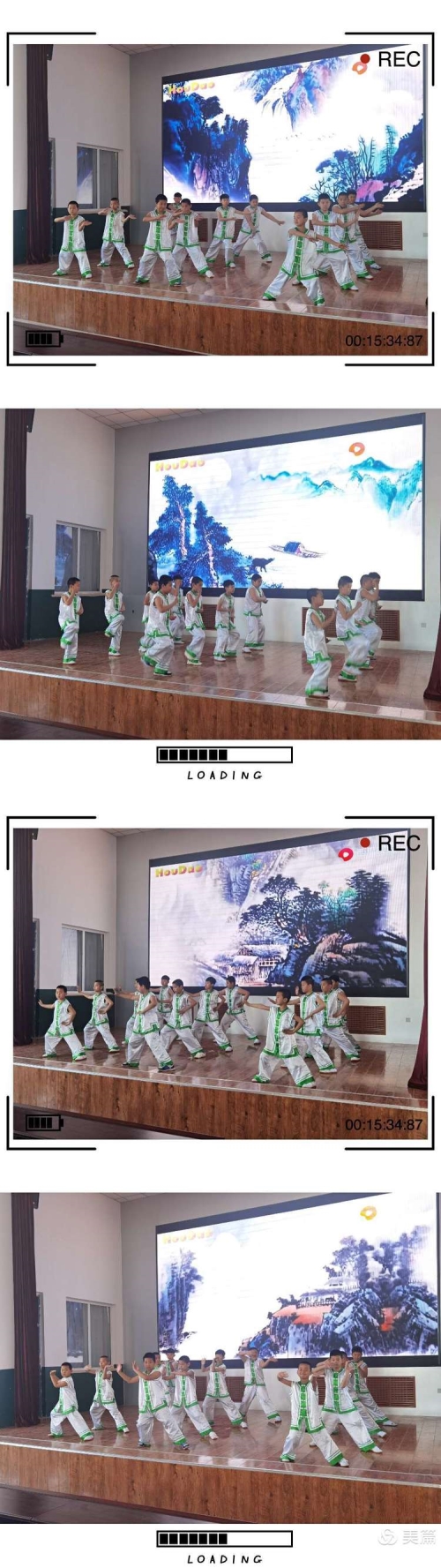 第三个节目是精武少年社团的《精武社团太极拳》。太极拳法为陈式太极拳,学生们跟着舒缓优美的云水禅心曲子进行表演,动作与动作之间衔接紧凑,每个动作都体现了太极的刚柔相济连绵不断的特点。学生去亲身体验中华国粹,培养民族自豪感,播下希望的种子,让传统文化生根开花,让传统文化发扬光大。