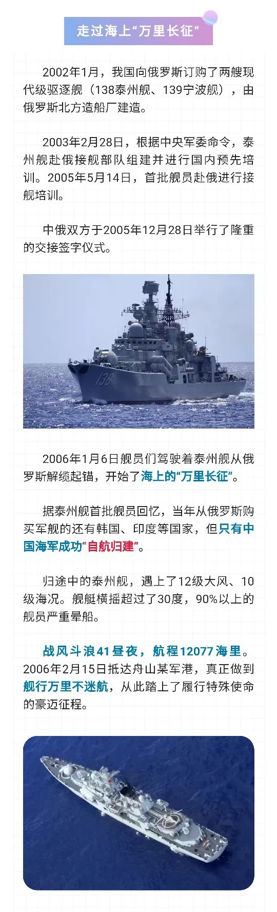 归建以来的壮美航迹作为我国引进某型导弹驱逐舰的首舰,泰州舰在人民海军的建设发展中具有举足轻重的地位。