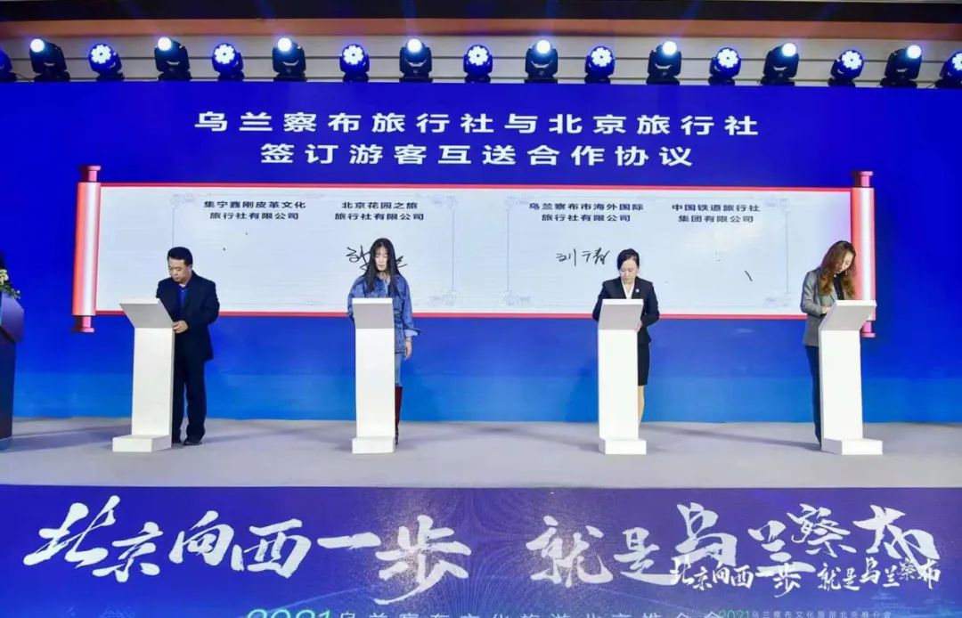 推介会上,市文旅体局和乌兰察布景区、文旅企业代表做了产品推介,市文旅体局与携程集团签订了全面战略合作协议,北京旅行社与乌兰察布市旅行社签订了合作协议。