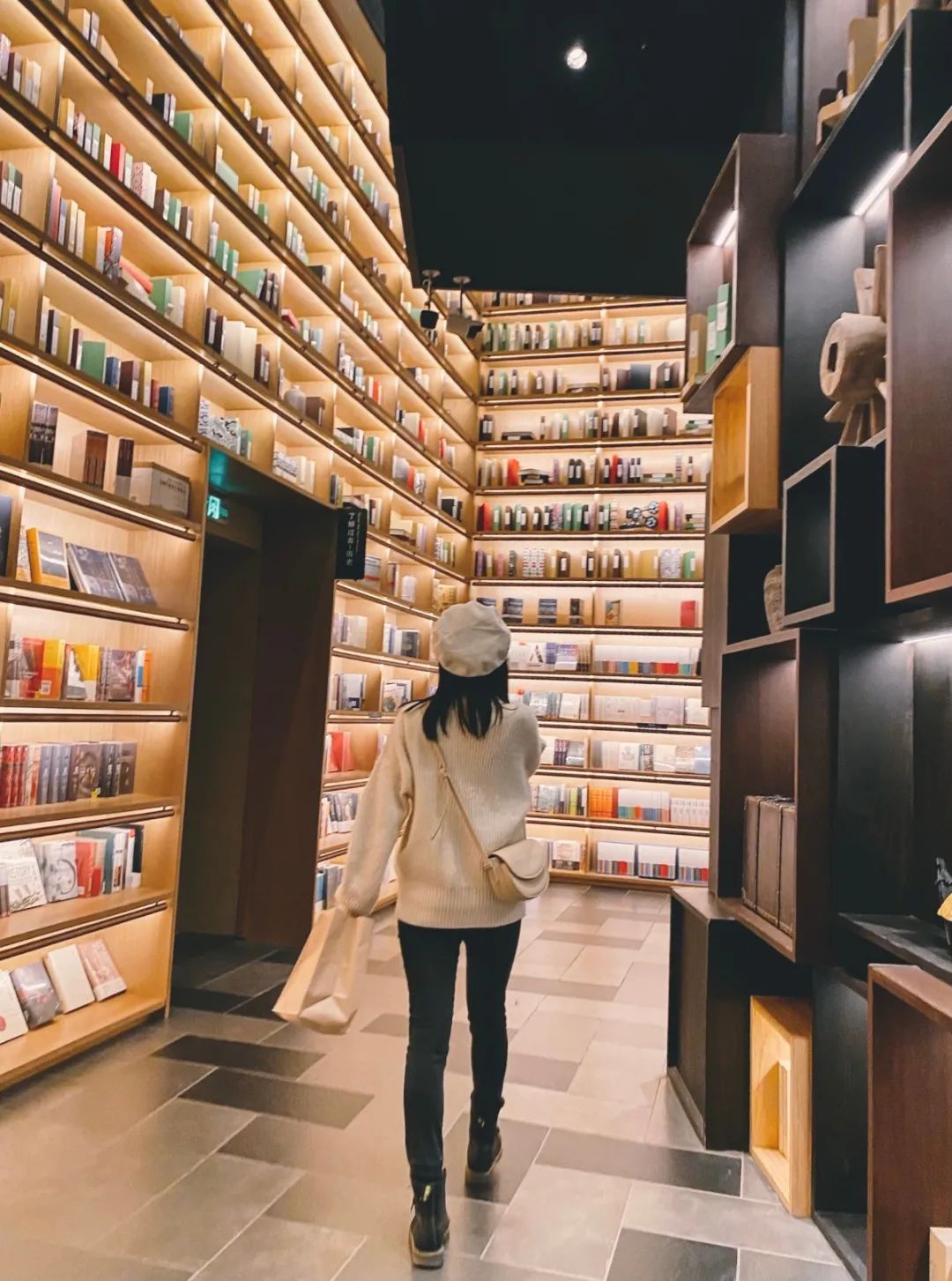 一面面酷炫的灯光书墙。放眼望去,“书山书海”的气势迎面而来。淡黄的灯光洒下来,在光与影的碰撞下,安静又雅致。