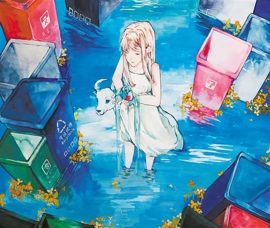 绘画《文明新会,环保先行》 梁启超纪念中学 作者:刘家鋆