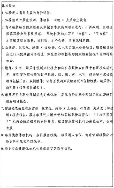第二页为体检须知,这一页不需要填写和签字。请参加体检的船员和医院的体检医师在体检前仔细阅读,按体检须知的要求开展体检。