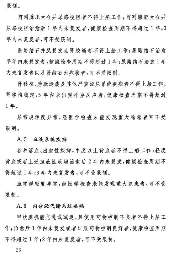 2、服务船员是指厨师、客船的服务员等,这类船员体检时要增加大便细菌培养检查。
