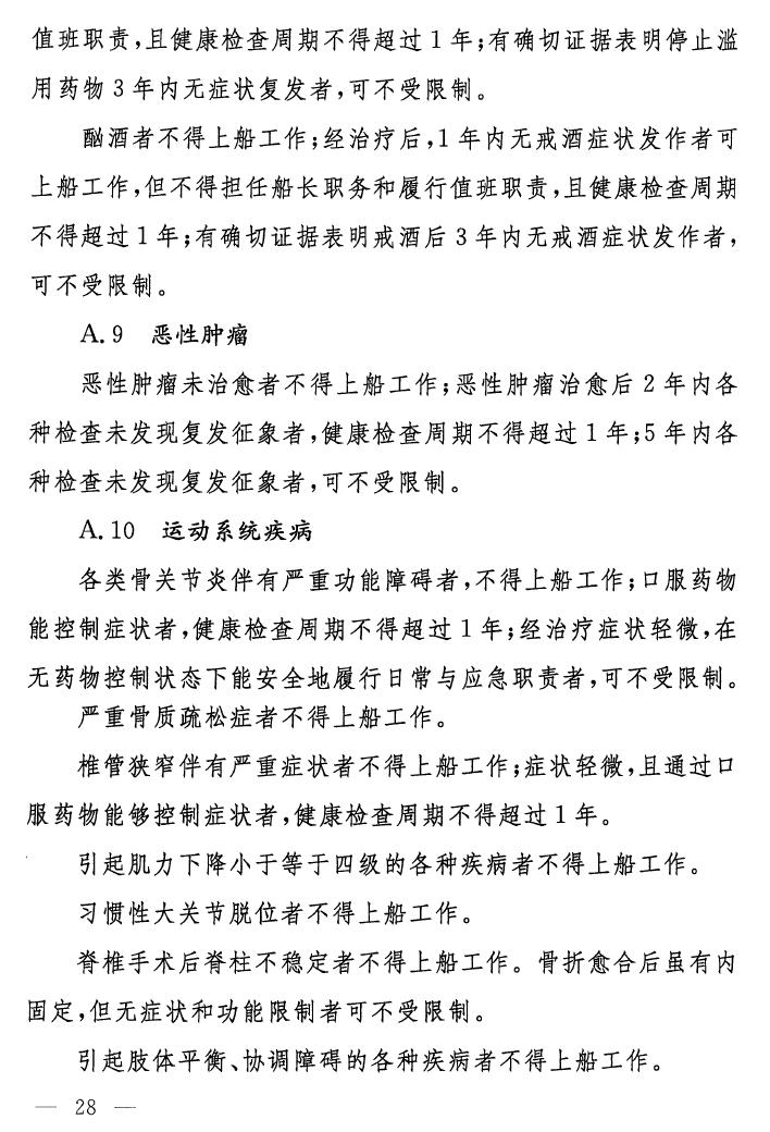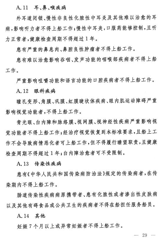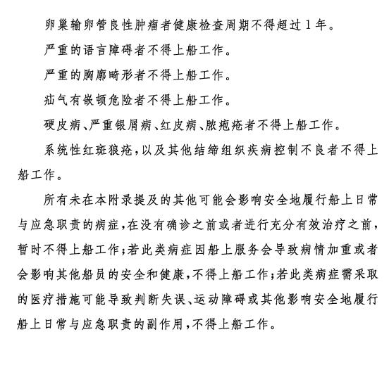 11、如有职业限制,应具体描述。判断依据为《内河船舶船员任职岗位健康要求》附录1:《船员职业限制》。
