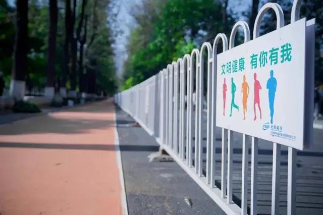 跑道采用了木质隔离花箱与机动车道进行分隔,花箱内种植紫色矮脚牵牛花,并用感应灯和灯带进行照明装饰,让跑友们在跑步时也能感受到翠湖的鸟语花香。