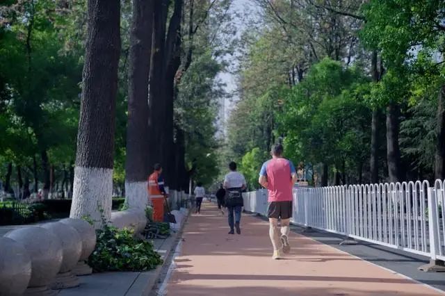 昆明翠湖边的这条橙色慢行跑道