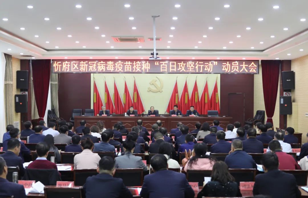 会议传达了《忻州市人民政府办公室关于加快推进新冠病毒疫苗接种当前重点工作的紧急通知》;宣读了《忻府区新冠病毒疫苗接种“百日攻坚行动”实施方案》;张生明代表区政府与长征街街道、忻口镇、区疾控中心等各单位签订了责任书。