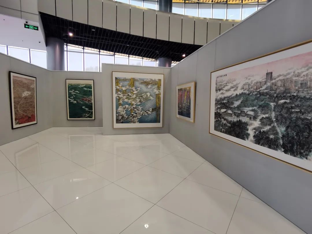 现场展出了《飞越》《超越》《跨越》等多幅水墨画和钢笔写生画,既有辽宁舰、洋山深水港、跨海大桥、陆家嘴金融区等内容,还有帮困扶贫、抗击疫情等感人瞬间,真实反映了中国共产党成立一百年,尤其是改革开放以来,中国取得的巨大成就。