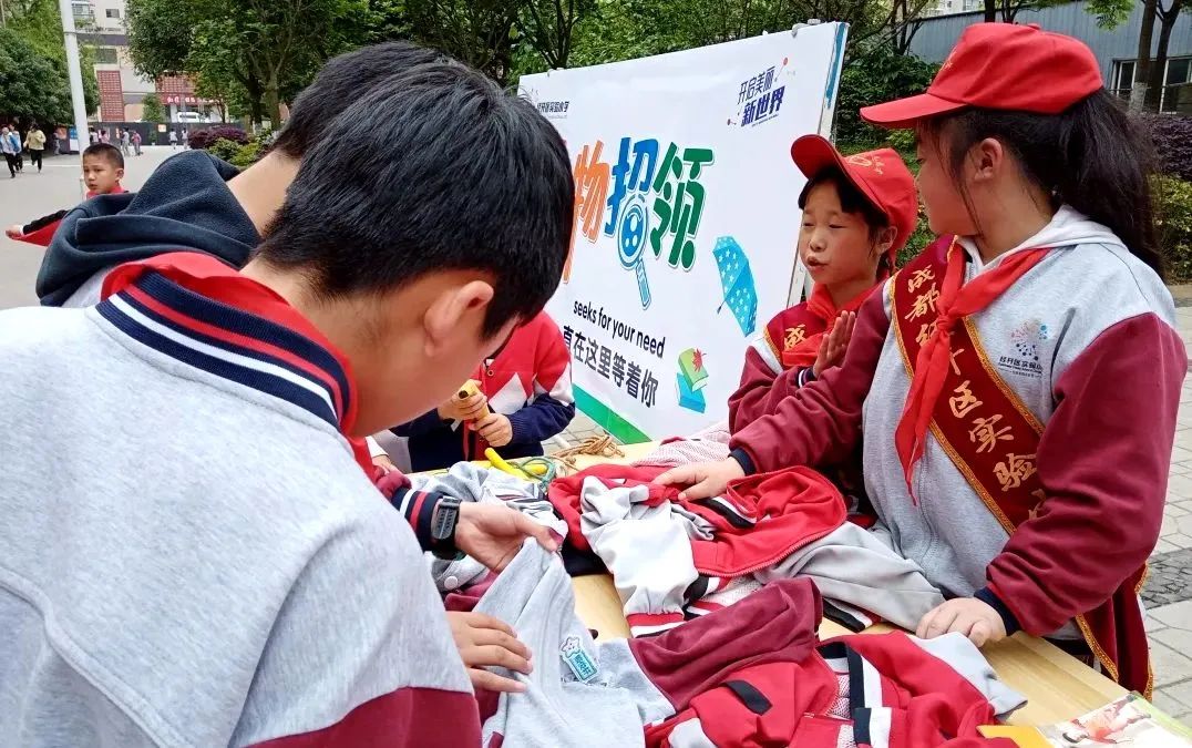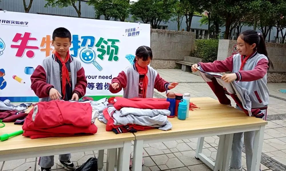 阳光明媚,在成都经济技术开发区实验小学校的校园里多了一处独特而又温暖的风景线,学校的少先队大队部失物招领活动开始啦!