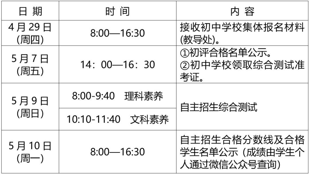 文化课自主招生日程安排: