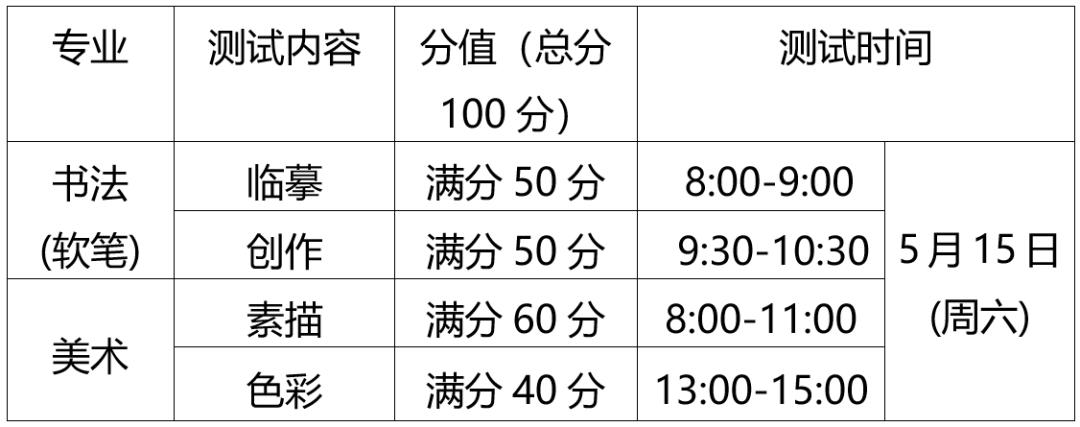 ①报考声乐、器乐主项的考生,上午7:30到校,8:00—12:00统一测试专业。地点:天问楼四楼