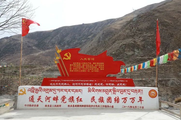 竖起鲜红党旗,筑牢共同体意识基地原有历史建筑基本保存完备,背景素材内容丰富,内涵深邃,饱含积极向上的正能量,融爱国主义教育、国防教育、党性教育、民族团结进步教育和红色文化教育元素于一体,具有很强的教育性和感染力。近年来,在省委组织部、玉树军分区、州委组织部、州委宣传部、州交通运输局、州创建办等上级部门大力支持下,先后投入20余万元,对教育基地进行提档升级,竖起鲜红党旗,搜集守桥民兵班使用过的桌椅、炉子和受到的表彰及幸福桥通车剪彩仪式等物品在哨所展览。近三年来,先后有省州县乡村五级党员领导干部、部分中小学学生4000余人次前往教育基地参观。特别是在全县上下深入开展党史学习教育和“永远跟党走”群众性主题教育宣传活动之际,通天河民族团结综合教育基地成为“网红打卡”首选之地。近一个月先后有10多批近500人次前往教育基地观瞻接受精神洗礼。