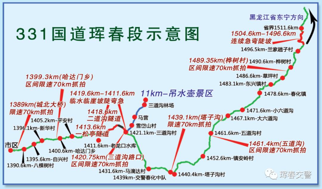 331国道珲春段:1445公里至1446公里处路段、1462公里至1463公里处路段、1498至1499公里处路段有路面塌方,存在道路交通安全隐患,请过往车辆注意行车安全。