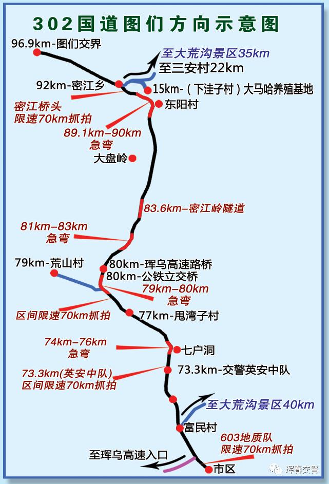 1. 74公里至90公里有多处急弯。请广大交通参与者行径此路段时注意观察路况、减速慢行。2. 密江桥头区间限速70公里抓拍;77公里区间限速70公里抓拍。(甩弯子村)