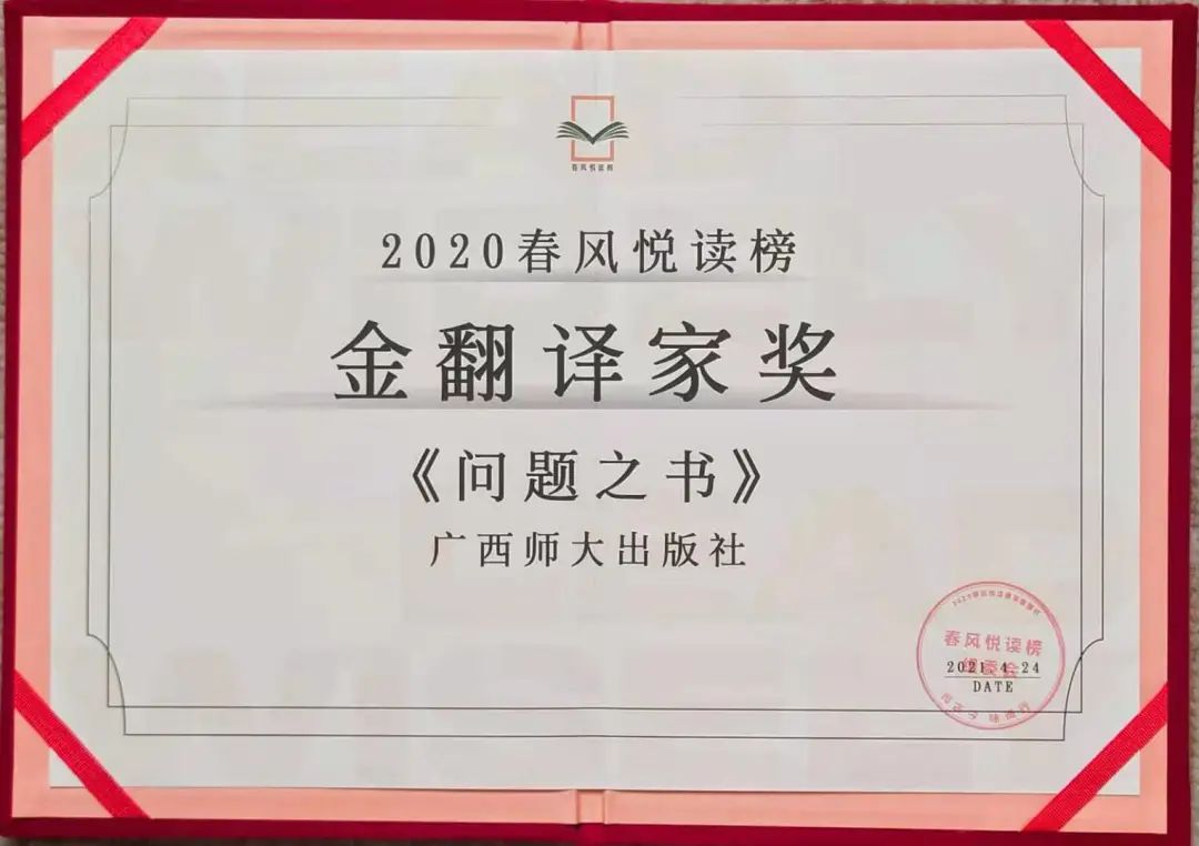 4月24日,一年一度的“春风悦读榜”揭晓,“金翻译家奖”颁给了刘楠祺《问题之书》(广西师范大学出版社,2020年12月)。译者刘楠祺接受了小时新闻记者的采访。
