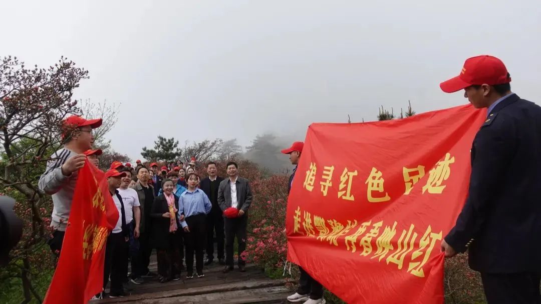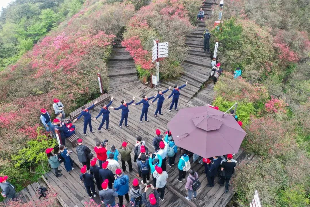 发现团乘坐高铁来到麻城市,登上龟峰山,百里杜鹃花开,一路繁花似锦,宛如一幅“千峰叠起嶂,杜鹃花似海”美丽画卷,令过往旅客沉醉。位于大别山下的合武高铁沿线的杜鹃竞相绽放,缤纷绚烂。