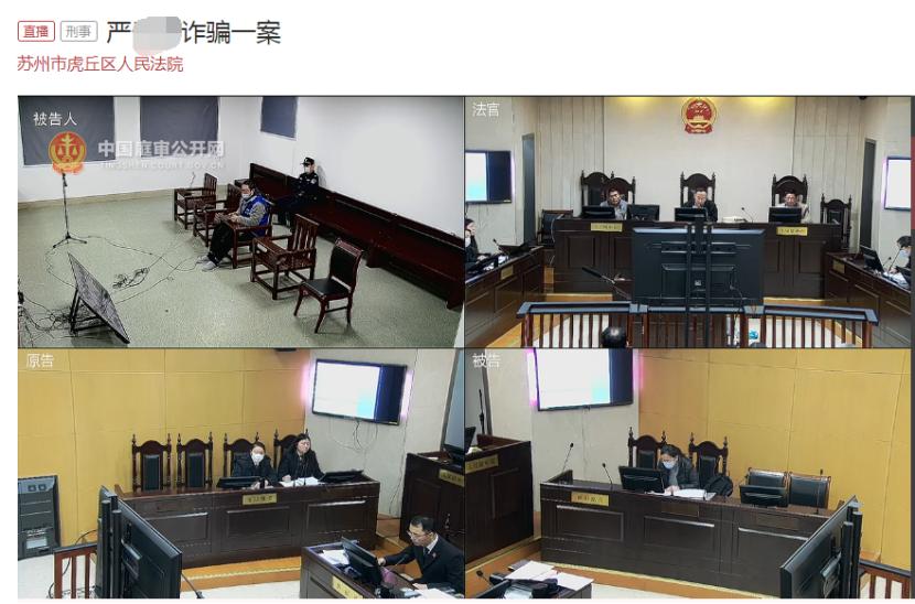 在中国庭审公开网上,记者查到苏州市虎丘区人民法院去年底关于严某诈骗案的庭审直播回放。