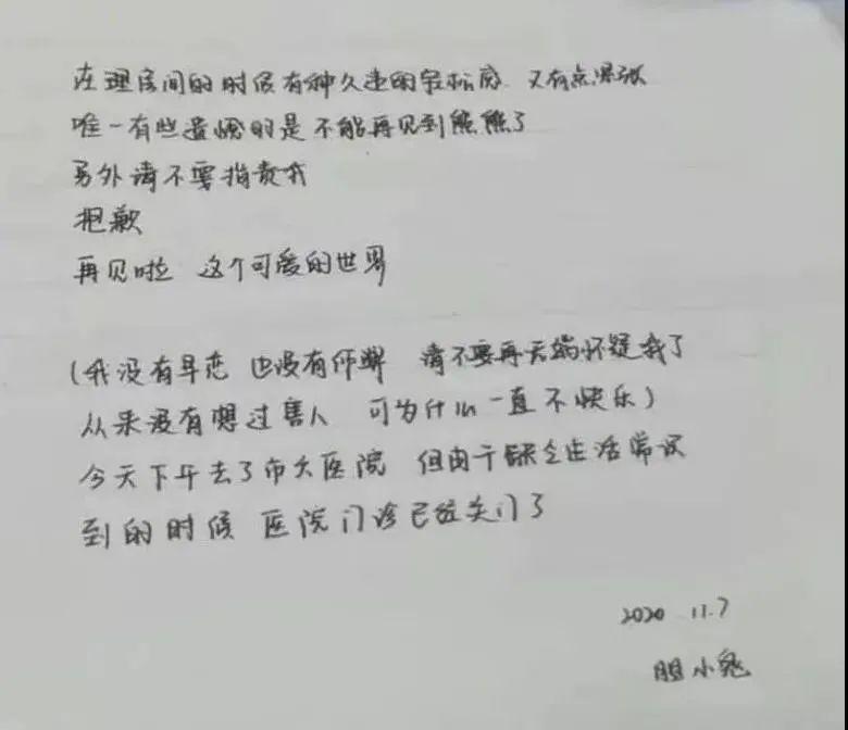 陕西西安,一名12岁的女孩在墙上写下“再见了”三个字后,从公寓20层的窗口,一跃而下。