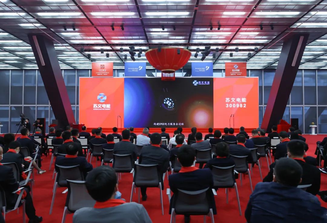 4月27日9点25分,深圳证券交易所内钟声鸣响,苏文电能科技股份有限公司在深交所创业板首发上市,股票简称“苏文电能”,代码“300982”。副市长杨芬参加活动。