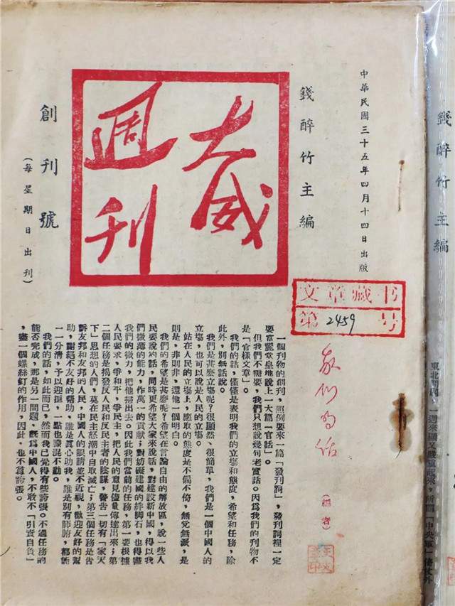 “这里写着主义,藏着精神,是真正的宝!”李卫国说,《大威周刊》是解放战争时期我党在威海创办的一份先进刊物,旗帜鲜明地宣传党的路线、方针和政策,是胶东革命统一战线的重要阵地,也是胶东党史研究的重要参考。