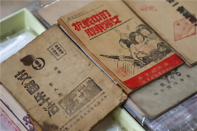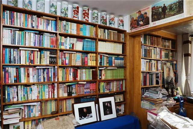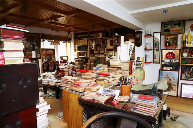 在李卫国的家中,沿墙而立的书柜上整齐地摆放着他收藏的各类文献和书籍,地面上东一堆、西一摞地放着各种旧报纸,大厅的多宝格也摆满了各式各样的老物件……万余件珍贵文献让这里俨然成了一座微型的博物馆。