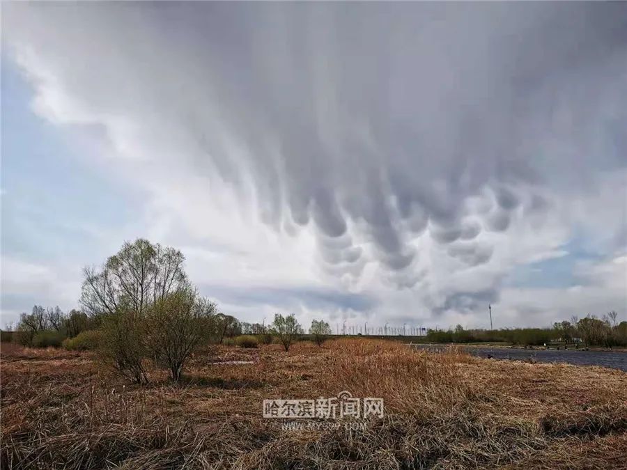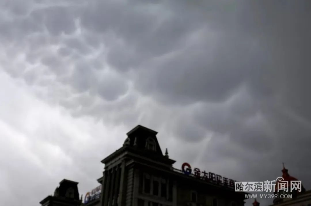 对于这一奇特的天气现象,哈尔滨市气象台副台长方丽娟告诉记者,从照片上来看,这是乳状云,又称“乳状积云”、“悬球云”,一般都是生成在雷雨的扰流区附近,形成于积雨云下方,是一种少见的云。