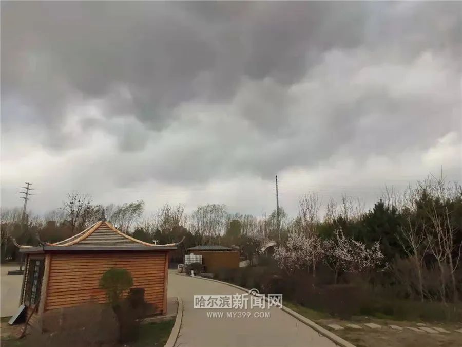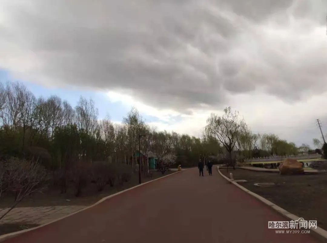 果然,下午冰城就出现了明显的雷雨大风。手机记者卖炭翁在下午14时拍摄到冰城天空逐渐变了颜色,主城区出现7-8级阵风,随后城区下起了雷阵雨。一时间,主城区飞沙走石。