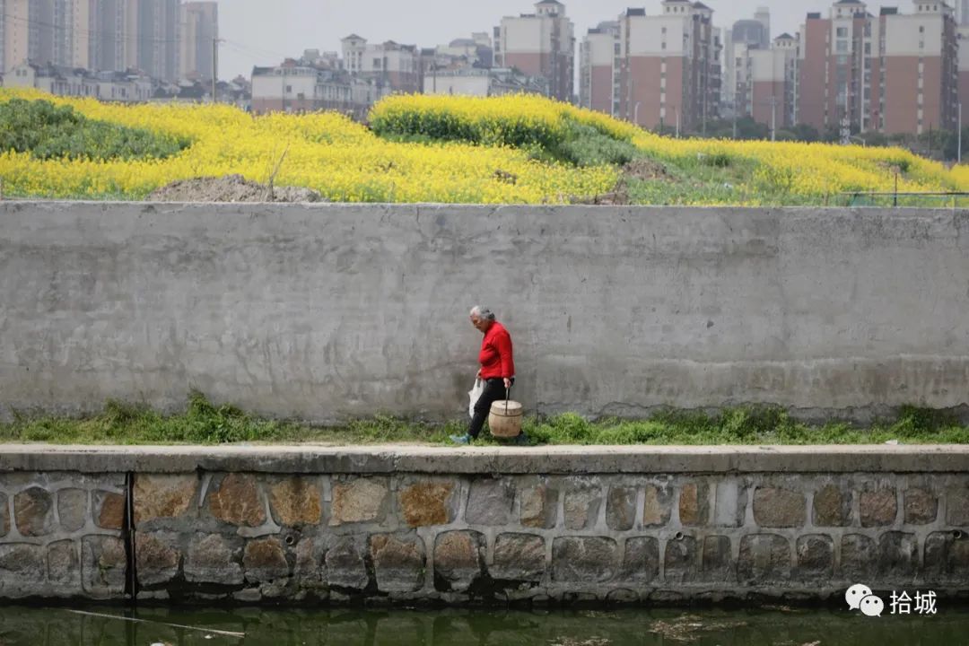 苏州(江苏)- 2018年3月30日,工业园区,老太走在通往菜地的小路上。虽然早已搬进了高楼,老人依然难舍传统耕作生活。拾城 倪黎祥