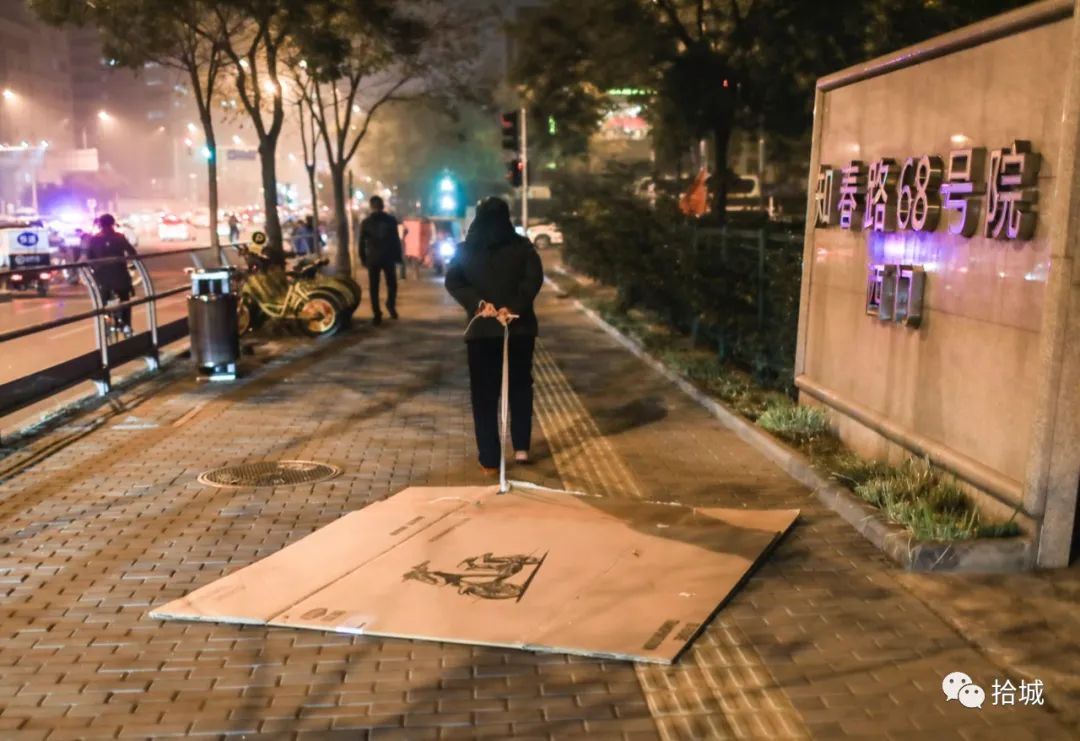 北京- 2019年11月9日,一位老人拖着捡来的一块大纸板回家。拾城 浦峰