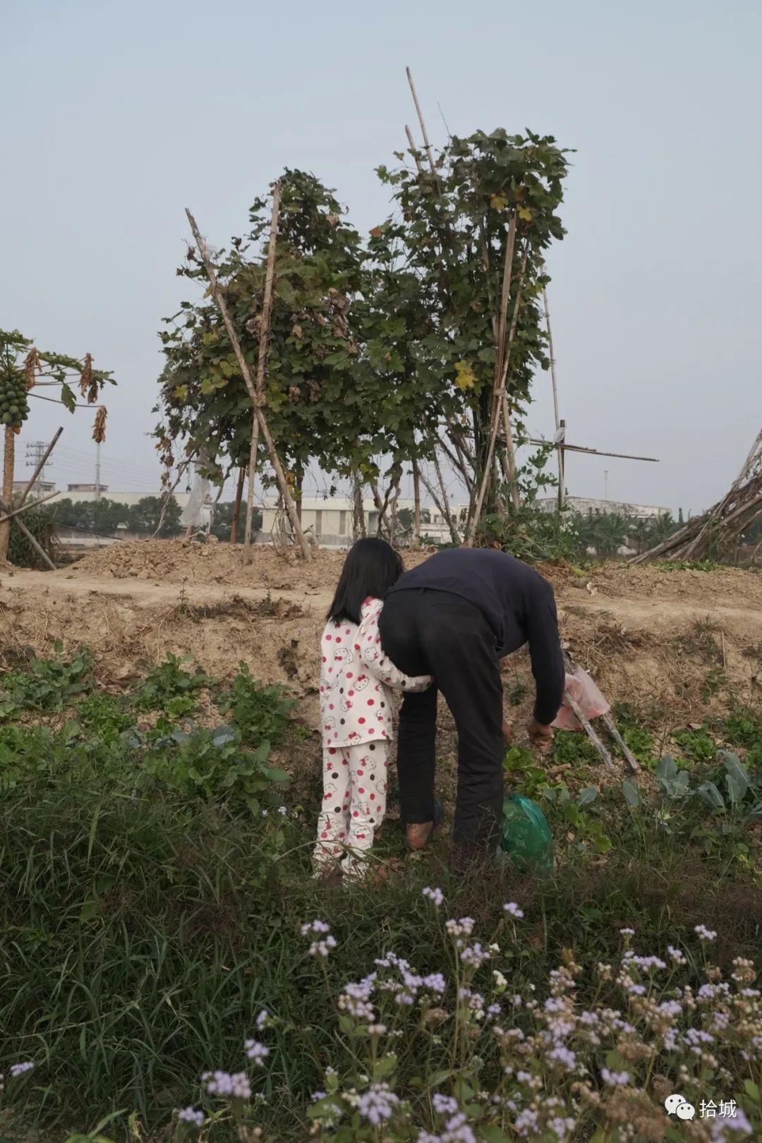 台山(广东)- 2021年1月26日,大江镇,女孩跟着爷爷到田里摘菜。拾城 梁永祥