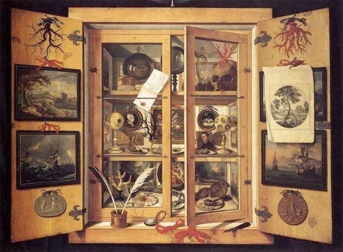 目前普遍认为,好奇柜诞生于16世纪,概括说明,就是收藏家陈列自己稀奇物件和珍贵文物的房间。但是,关于好奇柜设立的目的和意义,却有着很大的理解空间。