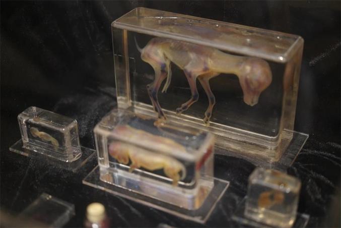 ▲ 精美的标本,无疑是给了生物二次生命。我们可以看到胚胎标本、浸渍在罐子里的蛇、鞭蝎、蜥蜴、石龙子。但这和学校生物标本室的感觉完全不同,因为其中带着一种复古的美感